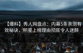 【爆料】秀人网盘点:内幕5条亲测有效秘诀,明星上榜理由彻底令人迷醉