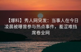 【爆料】秀人网突发:当事人在今日凌晨被曝曾参与热点事件,羞涩难挡席卷全网