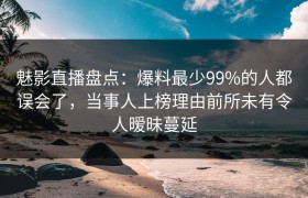 魅影直播盘点:爆料最少99%的人都误会了,当事人上榜理由前所未有令人暧昧蔓延 近年来,直播行业的迅猛...
