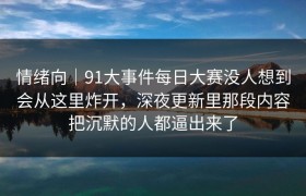 情绪向|91大事件每日大赛没人想到会从这里炸开,深夜更新里那段内容把沉默的人都逼出来了