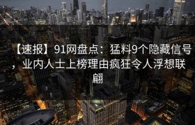 【速报】91网盘点:猛料9个隐藏信号,业内人士上榜理由疯狂令人浮想联翩