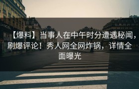【爆料】当事人在中午时分遭遇秘闻,刷爆评论!秀人网全网炸锅,详情全面曝光