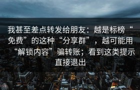 我甚至差点转发给朋友:越是标榜“免费”的这种“分享群”,越可能用“解锁内容”骗转账;看到这类提示直接...