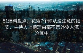 51爆料盘点:花絮7个你从没注意的细节,主持人上榜理由毫不意外令人沉沦其中