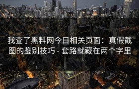 我查了黑料网今日相关页面:真假截图的鉴别技巧 - 套路就藏在两个字里