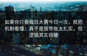 如果你只看每日大赛今日一次,就把机制看懂:真不是我夸张太扎实,但逻辑其实很硬 很多人每天匆匆打开“今...